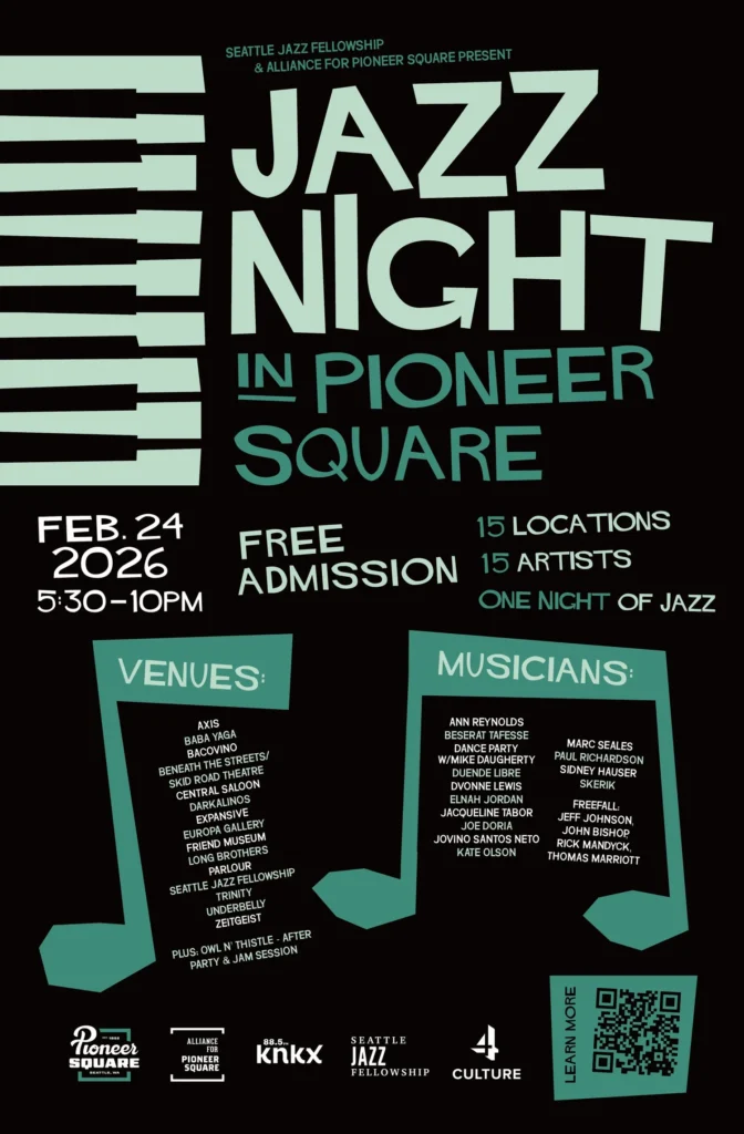 The Monday night jam in Pioneer Square has been quite the thing since the third Monday in January 2025. The session has been a gathering spot for some of the best musicians in town, from seasoned professionals to ascending high school and college players. It has also become a focal point for gen z to gather socially outside of the shadow of technology and screen life. Each week the club is full, and a line ascends up the stairs, around the corner and down First Avenue. These young people arrived via a Tic Tok video with the idea of an all ages, cover free experience with new music performed honestly, in the moment. They became a jazz audience with much more reverence for the music than most sessions. They listen, applaud solos, cheer on their favorites and deeply enjoy the idea of musicians creating on the spot jam style. We long-time patrons of the art are right there alongside them and it is a true joy. The musicians, both in house band led by Thomas Marriott, and the jammers feel the vibe as well. The early start and end allows for those who have school and work the next day. If you are looking for a ray of hope in our city, this may be your gig. Show up by 7 PM and you should have a seat. Musicians enter at will as long as they sign up to play. https://seattlejazzfellowship.org/