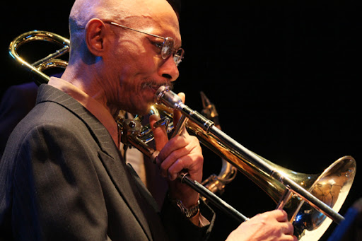 Iconic trombonist Julian Priester has been a major force in jazz music since he joined Sun Ra’s band in the late 1950s. His playing style is a departure from the JJ Johnson school of playing, an innovative approach that has been applied to his own historic recordings and those of the likes of Muddy Waters, Dinah Washington, Max Roach, Booker Little, Abbey Lincoln, Duke Ellington, John Coltrane and a host of others. In 1973, the Chicago born Priester left New York City for San Francisco to join Herbie Hancock’s Mwandishi Band. He began recording his own music for the ECM label and eventually settled into a second stint with Sun Ra’s Arkestra. Seattle was fortunate to receive him as a resident when he came here to teach at Cornish College of the Arts in 1979. Seattle students benefited from his tutelage until his retirement in 2011. Now at ninety years of age, Priester is experiencing a bit of a revival, having just performed in NYC with George Coleman, Reggie Workman, Billy Hart and others.