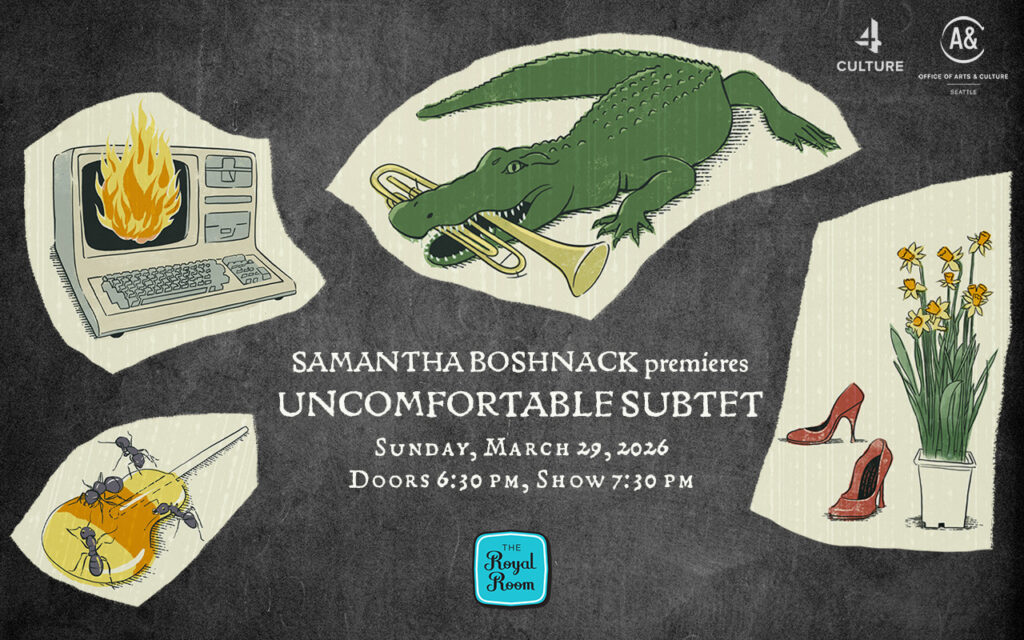 It’s been a while since Samantha Boshnack has come up with a new project, so this is a welcome item to the Seattle music calendar. The trumpeter / composer is known for her adventurous narrative statements that include angular melodies and many moving parts through the melodic and harmonic elements of her sound. No, this isn’t jazz exactly, but the music is rooted in that spirit, with a “new music” vibe that taps into the most adventurous forms of composition. Boshnack describes herself as a jazz composer, essentially because that’s where the open space lies between her musical world and ours. The result is something confoundingly original with the ability to allow you to have different insights into the nature of the connection of all world sounds. If you follow Boshnack, you know of which I speak- if not, you should hit the Royal Room for a Sunday night introduction. https://www.earshot.org/event/samantha-boshnack-premieres-uncomfortable-subtet/